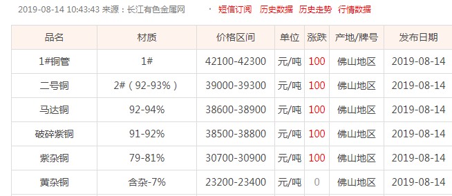 2019.8.13銅錠價46.5